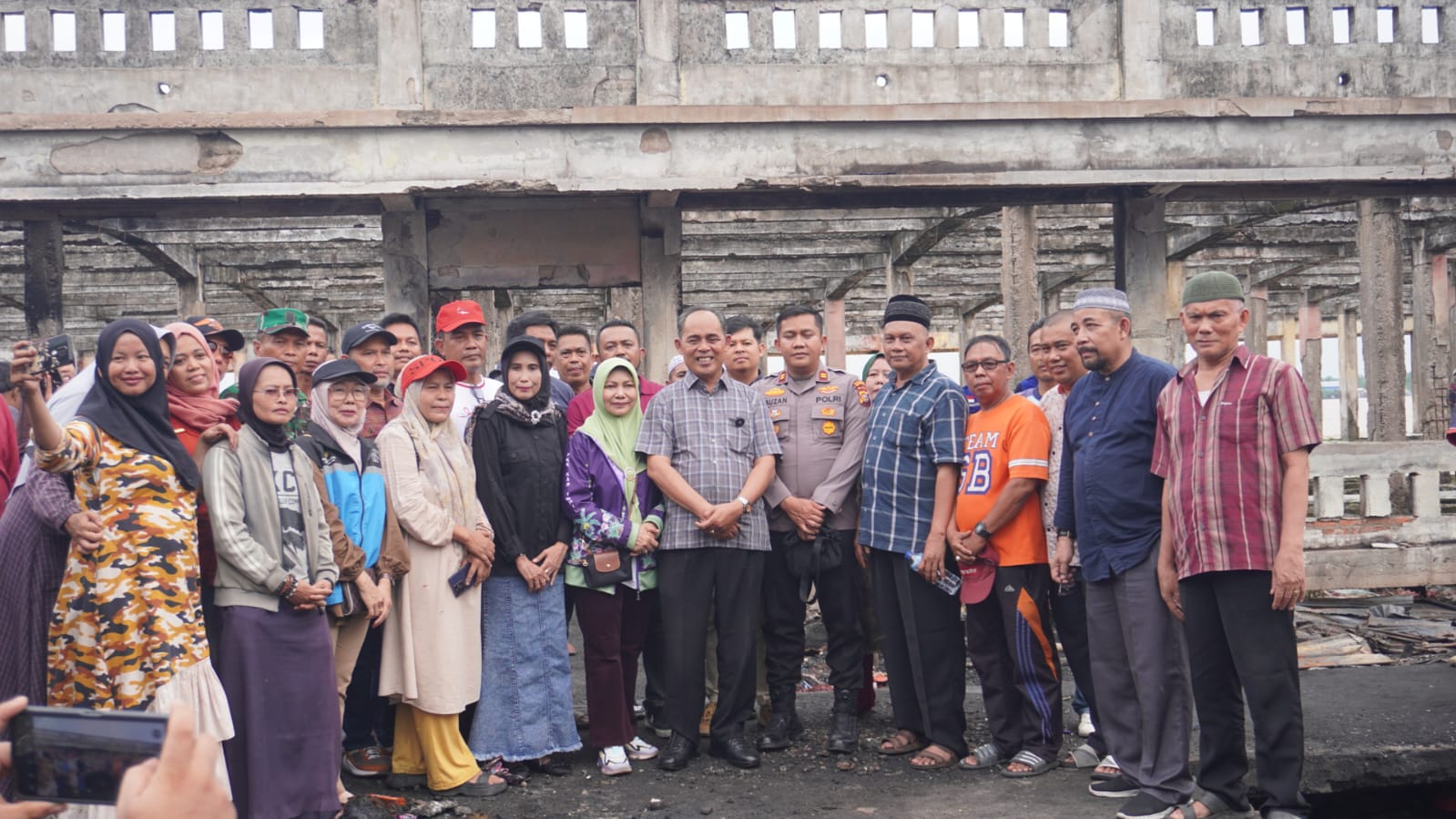 Pemkab Inhil Bersama Kepolisian dan HPPI Tinjau Lokasi Kebakaran Pasar Terapung Tembilahan
