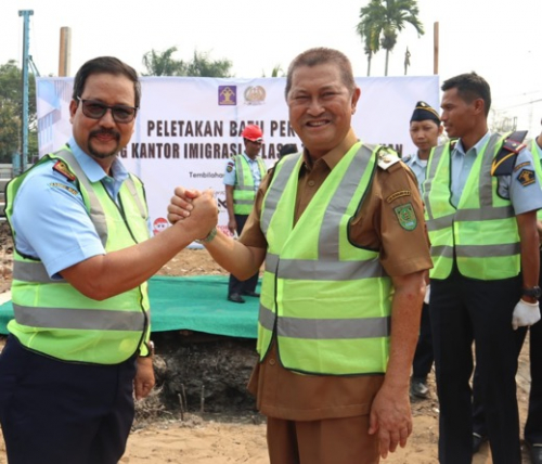 Peletakan batu pertama dilakuakn oleh Wakil Bupati Inhil, Syamsuddin Uti, Kepala Kantor Wilayah Kemenkum HAM Riau, M Diah dan unsur Forkopimda Inhil.