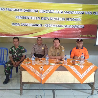 Berkaitan dengan hal tersebut Desa Candigaron kecamatan Sumowono kabupaten Semarang menyelenggarakan Kegiatan Pelatihan Desa Tangguh Bencana yg dilaksanakan di Balai Kecamatan Sumowono, Senin (08/07)