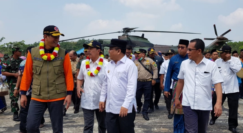 Indragirione.com, - Kepala Badan Nasional Penanggulangan Bencana RI Letjend. Doni Monardo bersama Kepala Badan Restorasi Gambut RI Nazir Fuad, Gubernur Riau Drs. H. Syamsuar dan Bupati Meranti Drs. H. Irwan M.Si, melakukan kunjungan kerja ke Desa Sungai Tohor, Kecamatan Tebing Tinggi Timur, dalam kunjungannya dalam rangka penanganan Darurat Bencana Kebakaran Hutan dan Lahan di Riau itu, Kepala BNPB mengapresiasi Pemkab. Meranti dan masyarakat yang dinilai berhasil mencegah terjadinya Karlahut.