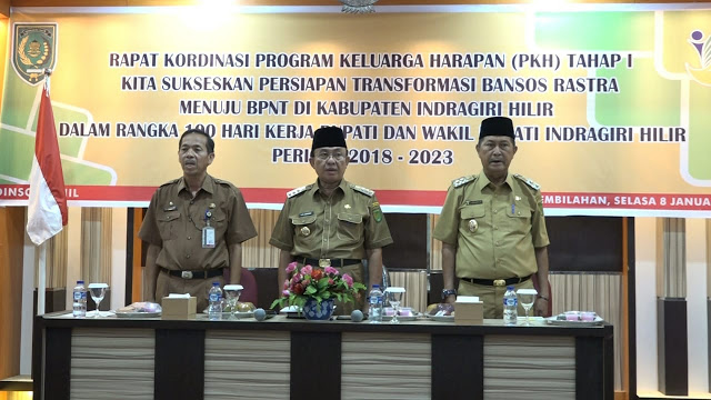 ‌Indragirione.com - Bupati Kabupaten Inhil, HM Wardan memimpin Rapat Koordinasi Program Keluarga Harapan (PKH) Tahap I (Satu), Selasa (8/1/2019) siang, di aula Hotel Inhil Pratama, Tembilahan. Kegiatan ini diselenggarakan juga dalam rangka 100 hari kerja Bupati dan Wakil Bupati Kabupaten Inhil Periode 2018-2023.