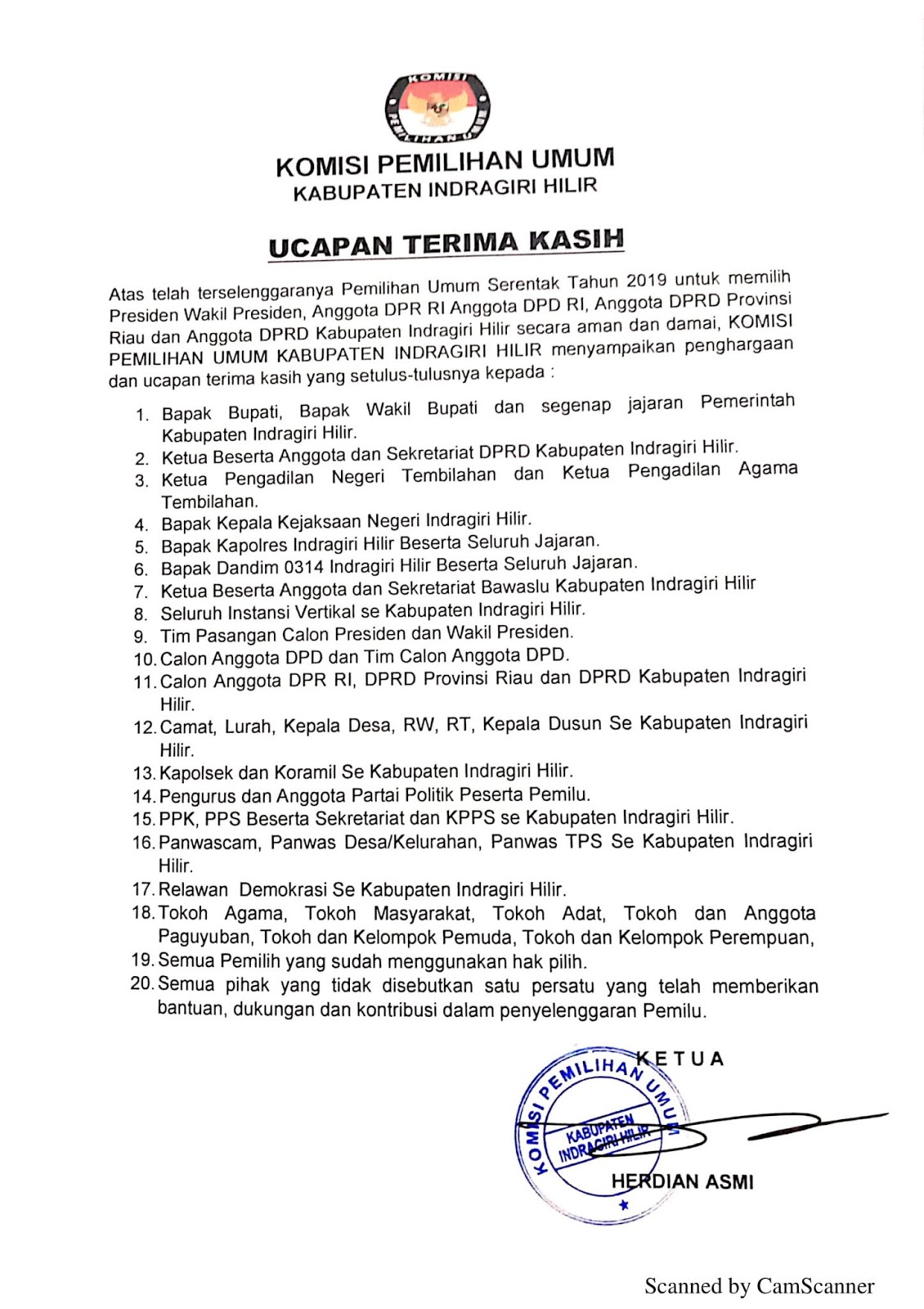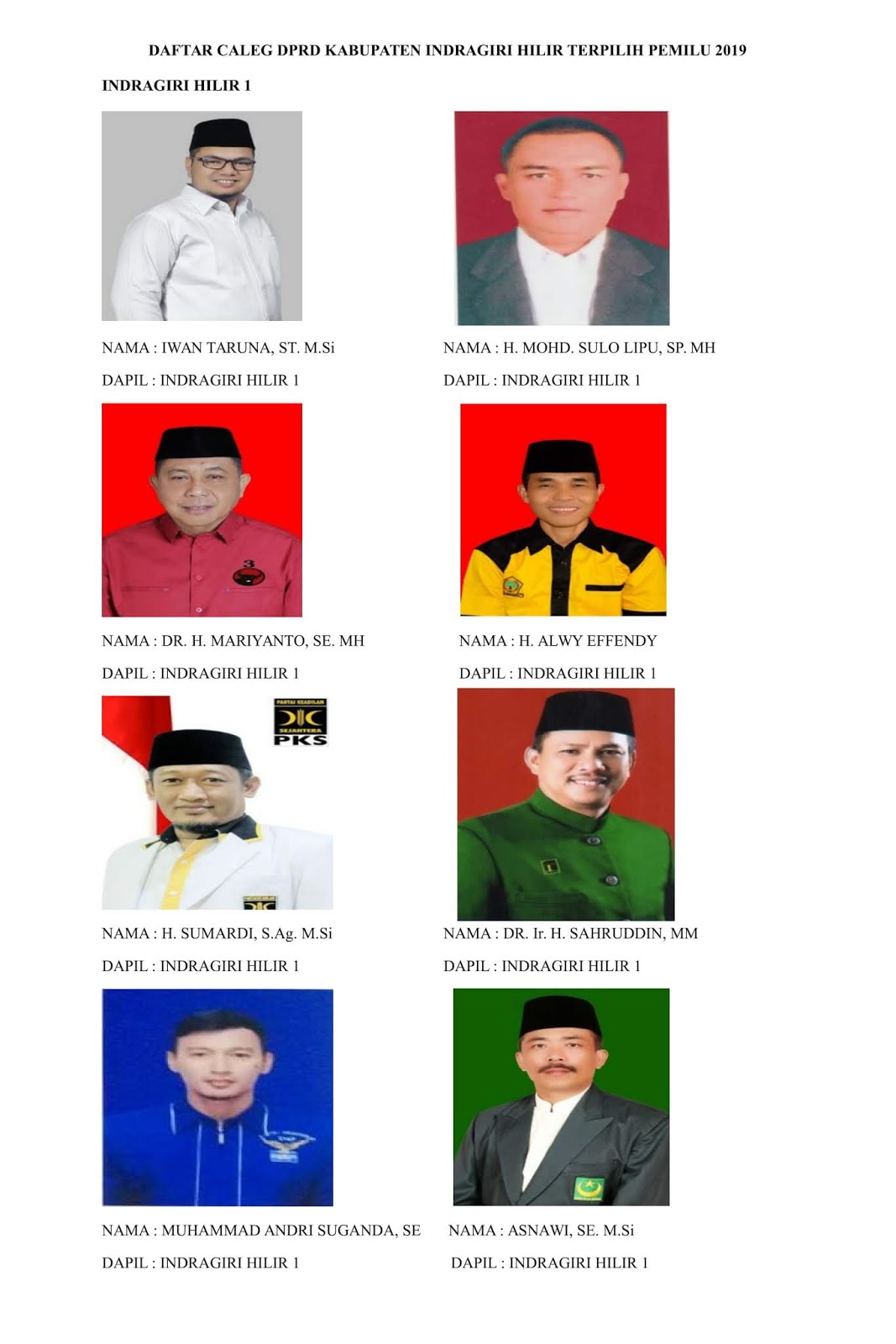 Daftar Caleg DPRD Kabupaten Indragiri Hilir Terpilih Pemilu Tahun 2019