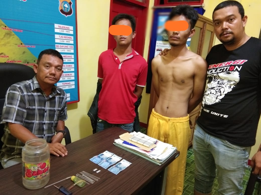 Indragirione.com - Aparat Polsek Rangsang berhasil meringkus dua terduga pelaku narkotika jenis sabu-sabu, Rabu (14/8/2019).