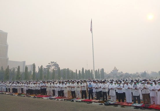 “Aneh saja gubernur kita ini, lebih mementingkan acara seremonial. Riau ini sekarang sedang dilanda bencana. Harusnya kita bersama-sama minta ampun, minta agar Allah menurunkan hujan,” kata Adi, warga Pekanbaru yang ikut salat.