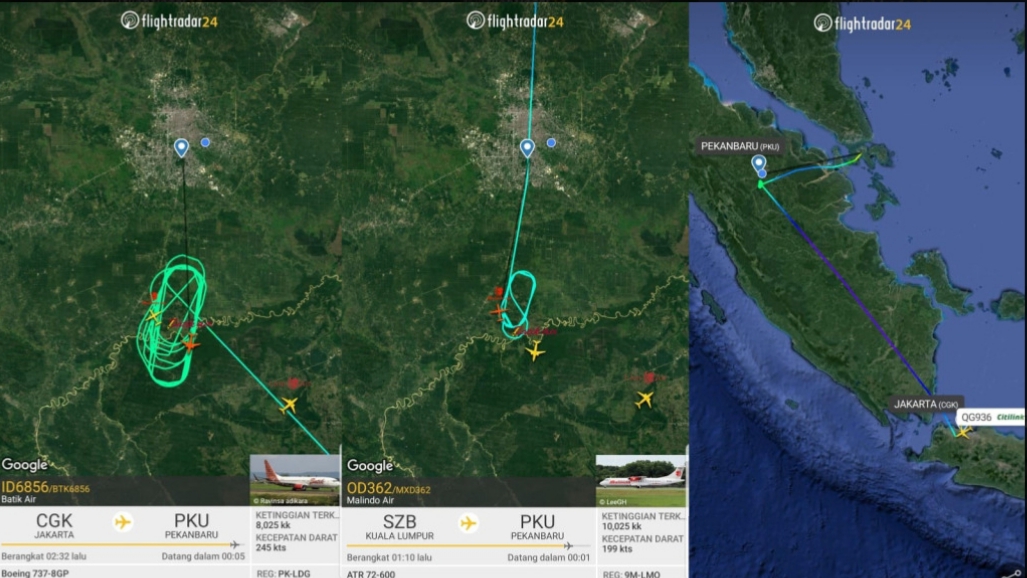 Tak hanya itu, pesawat Batik Air dari Jakarta dan Malindo Air dari Kuala Lumpur, terpaksa berputar-putar di udara sekitar Pekanbaru, sambil menunggu jarak pandang memungkinkan untuk mendarat.