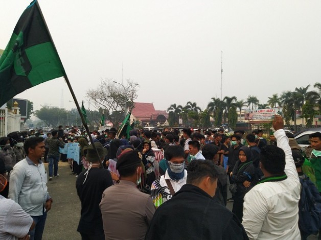 Mereka melakukan aspirasi, agar Pemprov Riau segera menyelesaikan persoalan kabut asap akibat kebakaran hutan dan lahan (Karhutla) Riau.