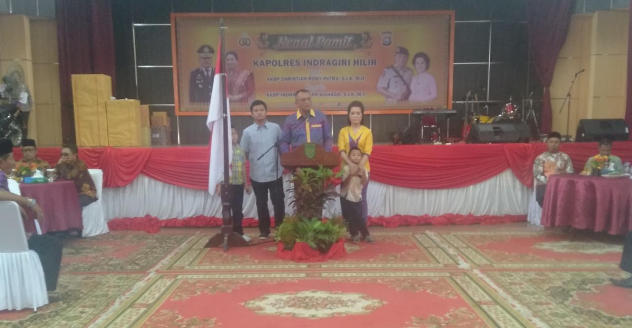Indragirione.com,- Pisah sambut Kapolres Indragiri Hilir dari AKBP Christian Rony Putra SIK MH kepada AKBP Indra Duaman Siahaan SIK MT dilaksanakan di gedung Engku Kelana, Kamis (26/9/2019).