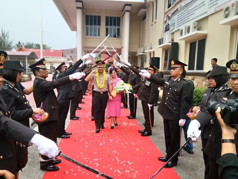 Indragirione.com, - Jajaran Polres Dumai menggelar acara pedang pora dan farewell (pamitan) kepada Kapolres Dumai sebelumnya yang dijabat oleh AKBP Restika Pardamean Nainggolan, Kamis (26/9/2019) siang.