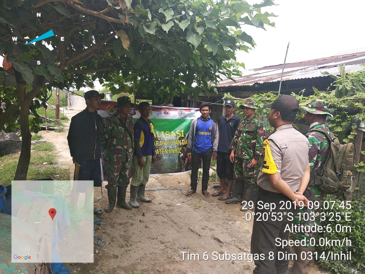 Indragirione.com,- Babinsa dan personil Koramil 12/Batang Tuaka bersama Polsek Batang Tuaka melaksanakan sosialisasi larangan pembakaran lahan dan hutan di Desa Kuala Seibatu Kecamatan Batang Tuaka, Minggu (29/9/2019).