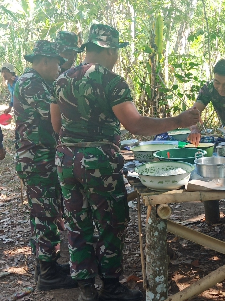 Indragirione.com, - Sagas TMMD ke 106 Kodim 0819/Pasuruan sedang istirahat usai melaksanakan pembangunan jalan. Waktu makan siang itu, dijadkan moment berkumpul untuk menyantap masakan yang disajikan.