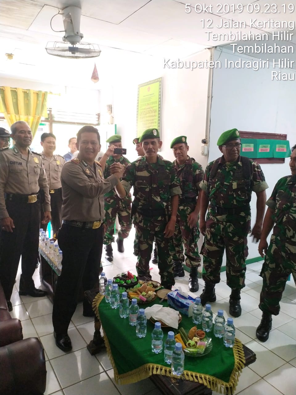 Indragirione.com,- Personil Polsek Tembilahan Hulu beri kejutan kepada Koramil 01 Tembilahan dalam HUT TNI ke 74 di Makoramil 01, Jalan Keritang, Kecamatan Tembilahan, Kabupaten Indragiri Hilir, Sabtu (5/10/2019).