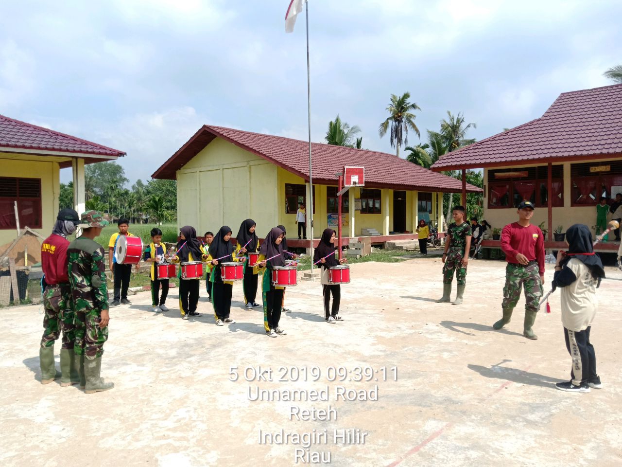 Setelah selesai berbincang dengan para guru di kantor, Sertu agus bersama rekannya menemui para siswa/i yang sedang melaksanakan latihan dram di halaman sekolah, seraya menawarkan diri untuk bergabung dan mengarahkan atau melatih para siswa/i tersebut.