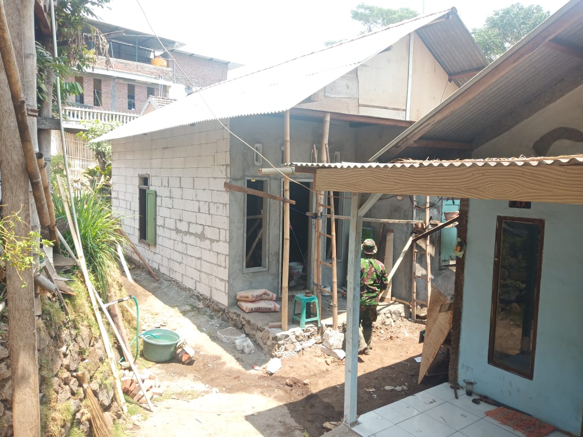 Bantuan Rehab rumah tidak layak huni (RTLH) pada Program TNI Manunggal Membangun Desa (TMMD) Reguler ke-106 Tahun anggaran 2019 di Desa jatiarjo kecamatan prigen kabupaten pasuruan, satu persatu mulai rampung pengerjaannya, Selasa (8/10/2019).