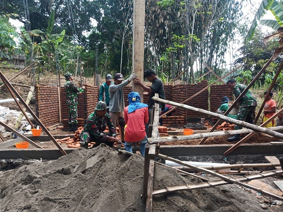 Kopka Eko mengatakan, Pelaksanaan pembangunan Rumah Tidak Layak Huni (RTLH) oleh Satgas TMMD Kodim 0819/Pasuruan sudah mencapai pemasangan batu bata .