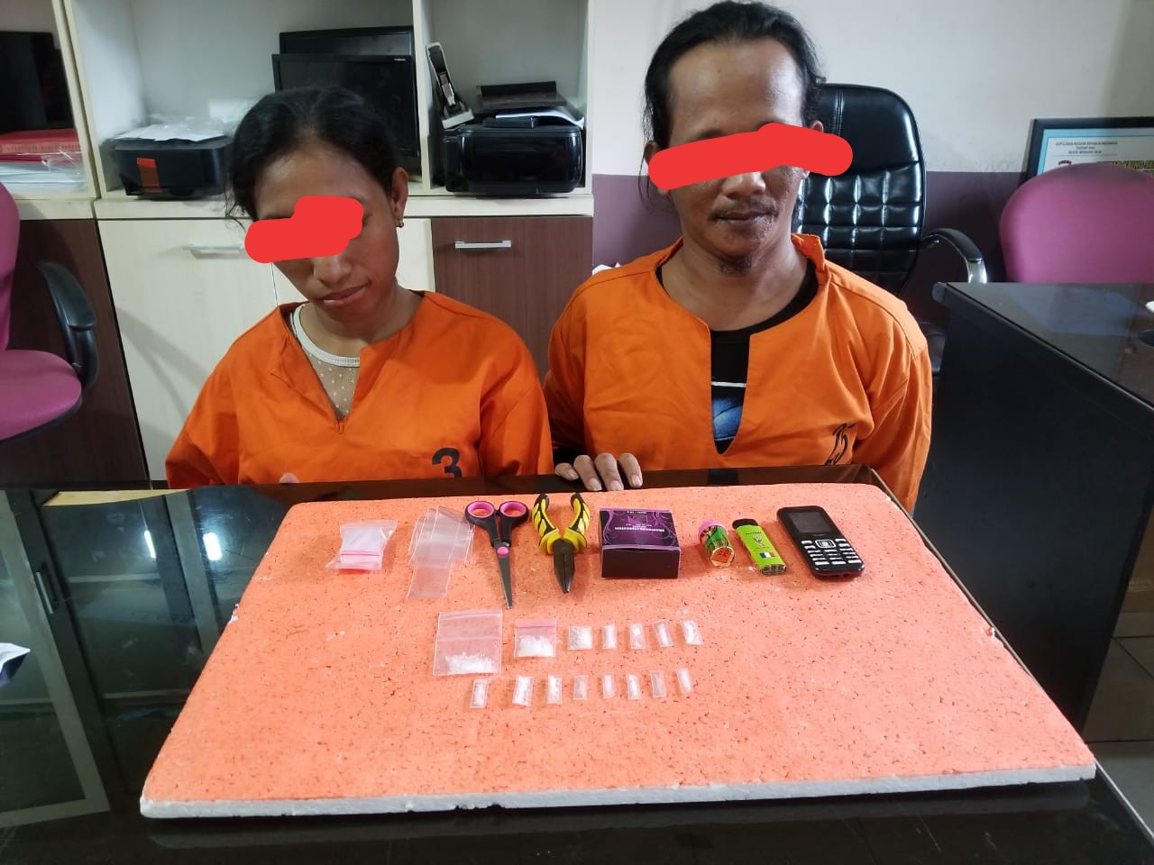 Pihak kepolisian mendatangi kediaman BI dan HN, dari hasil penggeledahan ditemukan 15 paket shabu yang disembunyikan dalam kotak bedak. Kemudian keduanya tersangka ini gelandang ke Mapolres Inhil guna penyelidikan lebih lanjut.(rilis)