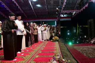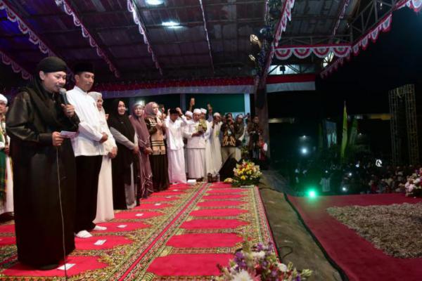 Indragirione.com- Presiden Joko Widodo (Jokowi) didampingi Ibu Negara Iriana menghadiri acara peringatan Maulid Nabi Besar Muhammad SAW dan Haul Syekh Abdul Qodir Al Jailani, di Pondok Pesantren Al Baghdadi, Rengasdengklok, Karawang, Jawa Barat, Sabtu malam, 19 Januari 2019.