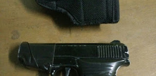 Barang bukti yang diamankan, yakni satu buah korek api berbentuk senjata api, satu unit hp samsung galaxy j7, satu buah name tag id card penyidik, 3 buah kalung name tag, satu buah dasi reserse, satu pasang sepatu pdh, 3 celana pendek tactical, 3 kaos oblong polisi, 2 buah kemeja pdh reserse, dan uang Rp 1 juta, serta satu unit kendaraan roda 4 merk ertiga.