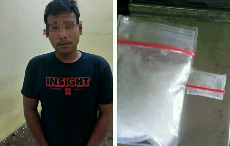 Setelah diambil terdapat dua bungkus kecil yang berisikan kristal putih. Diduga barang tersebut merupakan narkotika jenis sabu. Setalah ditanya oleh tim, tersangka mengakui bahwa barang tersebut miliknya yang di dapat dari MS (DPO).