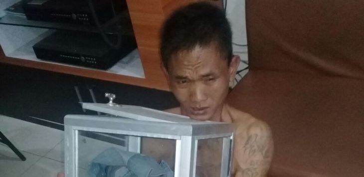 Kenzo kepergok mencuri kotak amal di Masjid Fastabiqul Khairat, RT 16, Kelurahan Pematang Sulur, Kecamatan Telanaipura, Kota Jambi, (30/12) sekitar pukul 15.00 WIB.