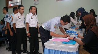 Indragirione.com - Seluruh pegawai Lembaga Pemasyarakatan (Lapas) Klas II A Sidoarjo dites urine, Sabtu (16/2).