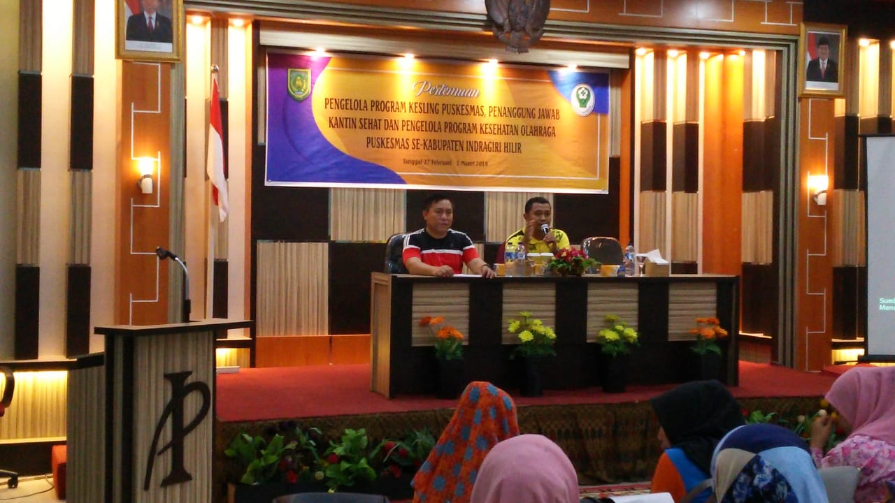 Indragirione.com - Dinas Kesehatan Kabupaten Indragiri Hilir mengadakan pertemuan Pengelolaan Program kesling, Puskesmas Penanggung Jawab kantin sehat dan pengelolaan program olah raga, yang diadakan di hotel Inhil pramata selama tiga hari, dimulai hari Hari rabu dan berakhir hari Jum'ad, acara tersebut di buka langsung oleh kepala Dinas Kesehatan Kabupaten Indragiri Hilir H. Zainal Arifin, M.Kes dihadiri oleh Kader - kader sehat dan kepala sekolah se Inhil.