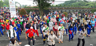 Dalam sosialisasi yang dibalut dengan kegiatan jalan santai, Polisi dari Polrestabes Bandung menjelaskan pentingnya keselamatan dalam berlalu lintas.