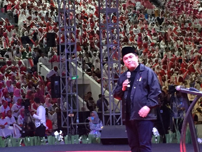 Hal itu disampaikan Erick saat menyampaikan sambutan di acara deklarasi Arus Baru Muslimah Indonesia dukung Jokowi-Ma'ruf. Erick Erick pun bicara soal pentingnya peran Ma'ruf Amin dan menyampaikan optimismenya soal Indonesia bisa jadi kekuatan ekonomi besar dunia.