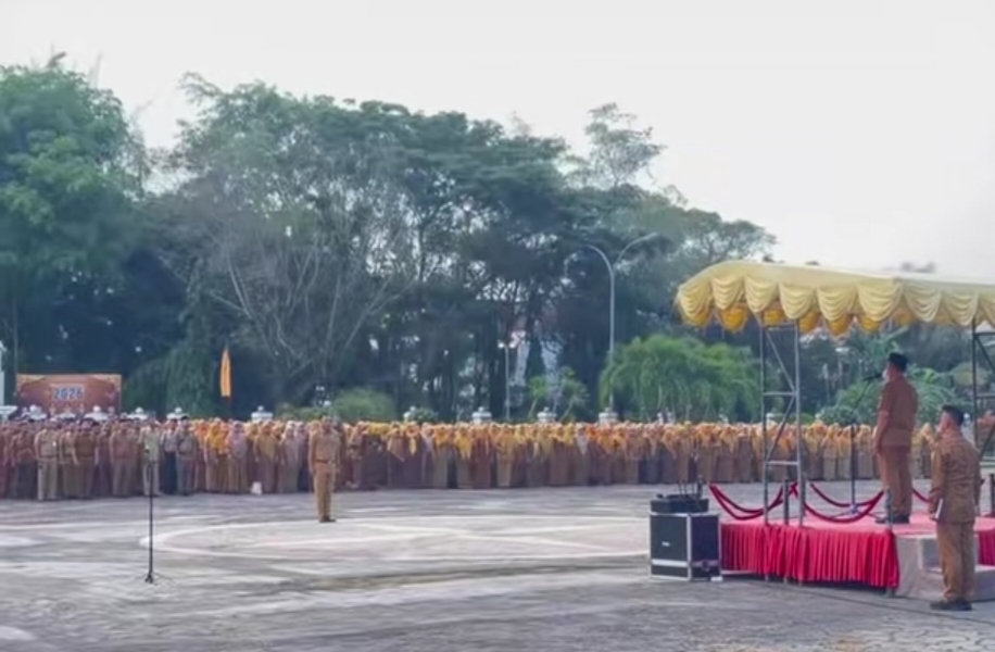 Inhil - Bupati Indragiri Hilir, Herman, memimpin apel bersama Aparatur Sipil Negara (ASN) di lingkungan Pemerintah Kabupaten Indragiri Hilir pada Senin 30 Maret 2026. Kegiatan ini dilaksanakan pasca libur nasional dan cuti bersama Hari Raya Idul Fitri 1447 H, bertempat di Lapangan Upacara Kantor Bupati, Jalan Akasia, Tembilahan.