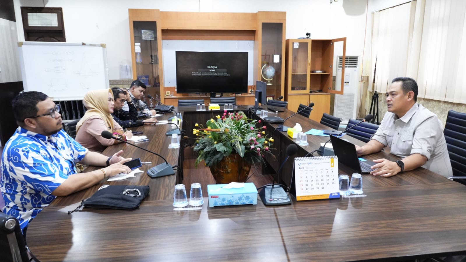 INDRAGIRI HILIR,- Kepala Dinas Kominfo Persandian dan Statistik Kabupaten Indragiri Hilir Dhoan Dwi Anggra,.S.STP.MH bersama Sekretaris Dinas serta beberapa staf mengunjungi Kantor Balai Monitor Spektrum Frekuensi Radio (Balmon) Kelas 1 Pekanbaru, pada Kamis (17/04/2026).
