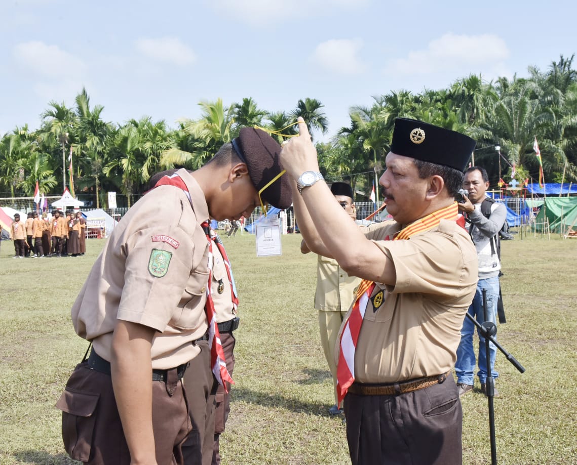 Pada kesempatan tersebut juga diserahkan hadiah perlombaan kegiatan selama perkemahan oleh sekda Said Syarifuddin.( Galeri Pemkab Inhil)