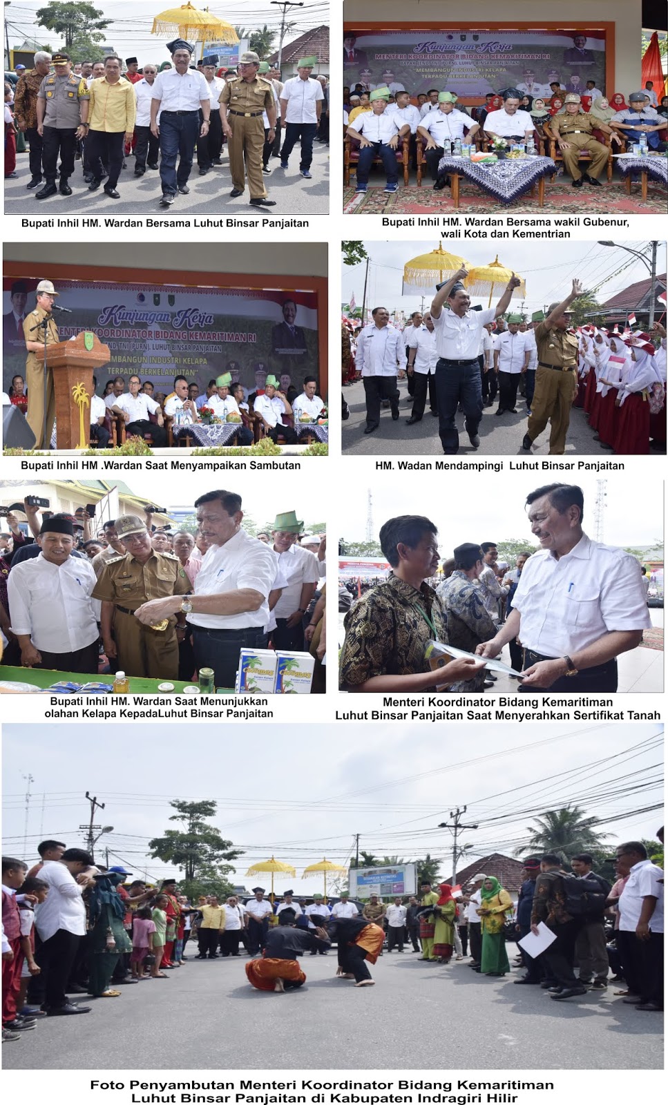 Sejalan dengan itu, Bupati HM. Wardan yang diwawancarai awak media usai melepas keberangkatan Menko Maritim dan rombongan mengatakan, program-program pemerintah Kabupaten Inhil mendapat respon dari Pemerintah Pusat yang dukungan dana dari pusat. Beliau juga menambahkan, dalam waktu dekat ini kita dipanggil langsung oleh Menteri Koordinator Bidang Kemaritiman untuk mempersentasikan program-program dan menindak lanjuti usulan-usulan kita, salah satunya perkebunan kelapa dan untuk memperbaiki harga kelapa beliau siap mensuport dan tidak hanya itu dibidang infrastruktur beliau juga siap mensuportnya.( Galeri Pemkab Inhil)