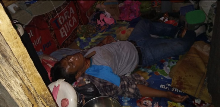 Sementara yang perempuan mengenakan kaos hijau dan celana jeans mengalami luka tusuk di leher dan terkapar bersimbah darah di luar rumah.