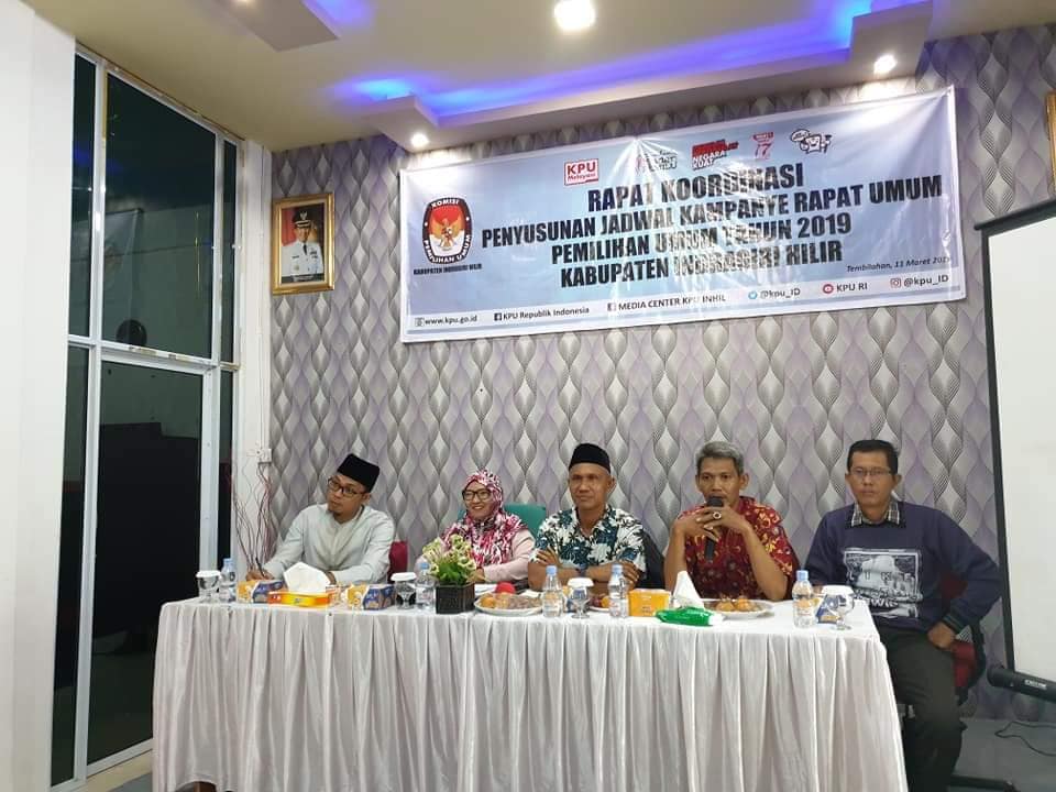 Ketua  Komisi Pemilihan Umum (KPU) Kabupaten Indragiri Hilir Hardian Azmi, SH. MH dalam sambutanya memgatakan," Berhubung rapat umum dan iklan kampanye akan dimulai tangal 24/3, KPU perlu menyusun jadwal Kampanye rapat umum tersebut dengan parpol dan Bawaslu dengan mengadakan rapat koordinasi.