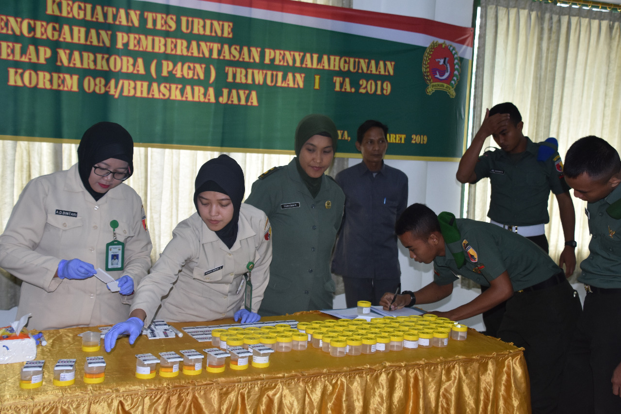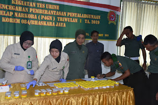Selama berlangsungnya pengecekan itu, tak hanya diikuti oleh prajurit dan PNS Korem saja. Namun, beberapa prajurit dari Satuan di wilayah teritorial Korem 084/Bhaskara Jaya, juga tak luput dari pemeriksaan urine yang berlangsung di Aula tersebut.