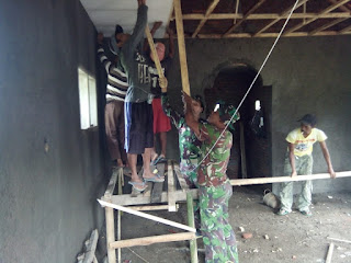 Serma Sudibyo, salah satu personel Satgas yang berada di lokasi tersebut mengatakan, saat ini pengerjaan Musholla itu sudah mencapai tahap pemasangan lantai dana atap plafon. “Ada lima personel dengan dibantu masyarakat sekitar, selesai memasang keramik dan plafon, kami akan bergerak menyelesaikan beberapa pengerjaan Musholla lainnya,” ujar Sudibyo di sela-sela kesibukannya. Kamis, 21 Maret 2019.