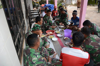 Jangankan di waktu santai, kata Tarmudji, di saat para Satgas menyantap makanan pun, mereka tak segan-segan untuk mengajak warga sekitar untuk ikut serta menikmati makanan tersebut. “Kadang, ada juga warga-warga yang mempersilahkan para Satgas untuk beristirahat di rumahnya. Mungkin warga kasihan, soalnya bapak-bapak itu sehari-harinya tidur di lapangan Desa yang beralaskan terpal,” tandasnya.