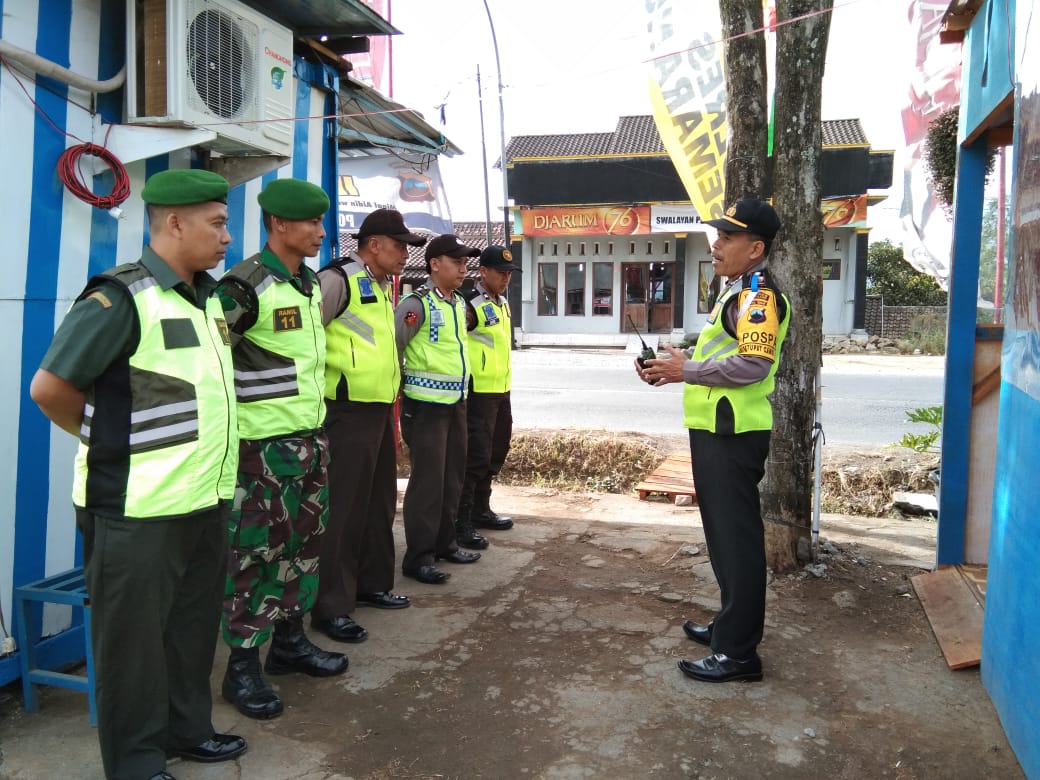Seperti yang terlihat sebelum pelaksanaan tugas Dan Pos pengamanan memberikan Briefing tentang situasi jalan dan pembagian tugas yang akan dilaksanakan oleh para anggota di Pos Pam Lebaran Jambu, Senin (03/06) pagi ini.