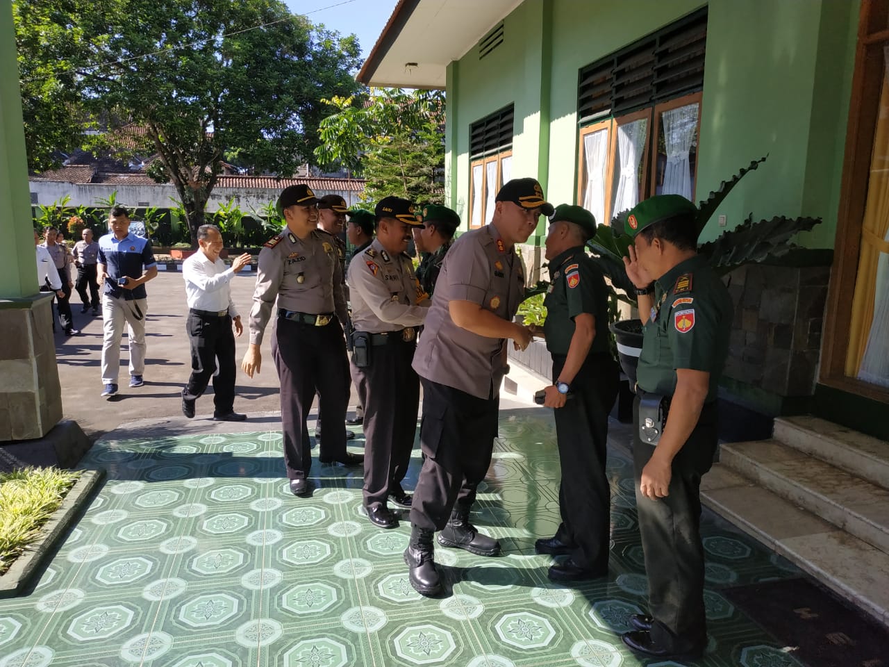 Kehadiran Kapolres Salatiga beserta jajaran ternyata untuk melaksanakan Halal Bihalal di Kodim Salatiga, Senin (13/06) disambut oleh Kasdim Salatiga dan jajaran perwira Staf Kodim Salatiga dan anggota.