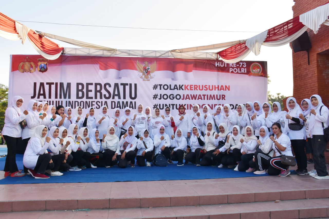 Kapolresta Mojokerto, AKBP Sigit Dani Setiyono mengatakan, deklarasi Jatim bersatu menuju Indonesia damai saat ini digelar, juga dalam rangka peringatan HUT Polri ke-73 tahun.