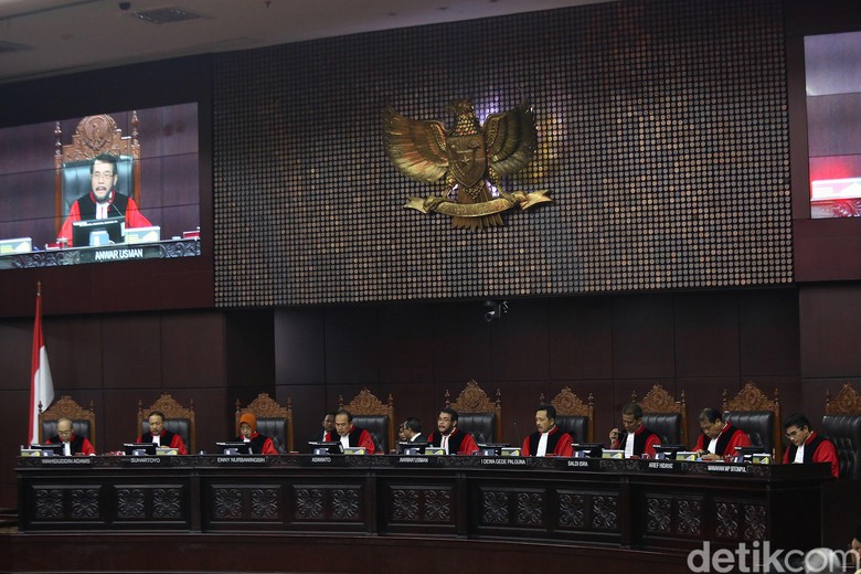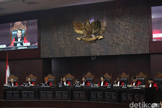 "Menurut Mahkamah analisis yang dilakukan pemohon tidak didukung dengan bukti yang cukup dan hanya asumsi belaka. Oleh karenanya menurut Mahkamah dalil pemohon a quo tidak beralasan menurut hukum," kata Hakim MK Manahan MP Sitompul di gedung MK, Jalan Medan Merdeka Barat, Jakarta Pusat, Kamis (27/6/2019).