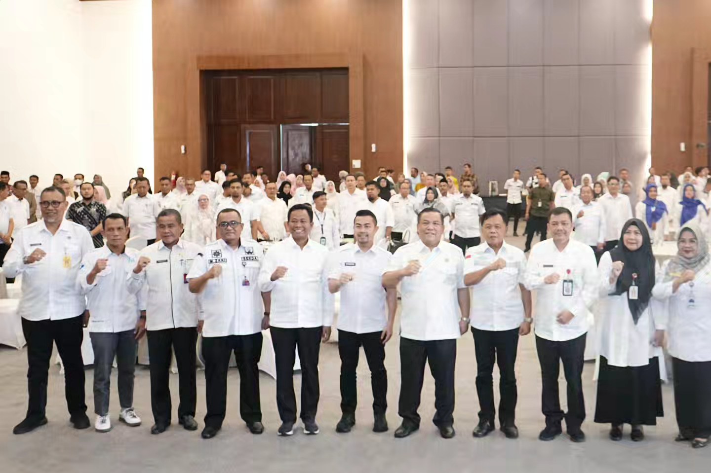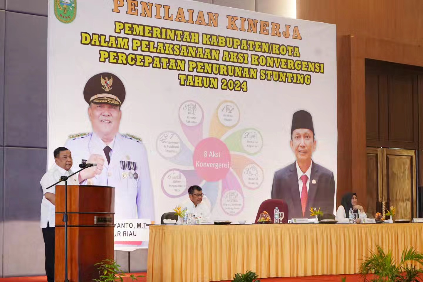 Rapat evaluasi yang dilaksanakan di Ballroom Hotel Aryaduta dibuka lansung Penjabat (Pj) Gubernur Riau SF Hariyanto dan turut dihadiri Bupati/Walikota Se-Provinsi Riau dan Ketua Tim Penanggulangan Penurunan Stunting (TPPS) Se-Provinsi Riau.