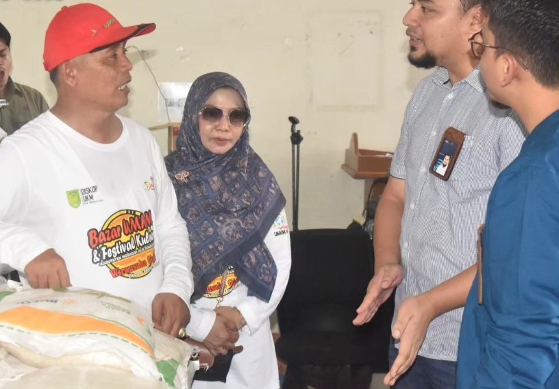 BUALKAN.COM,INHIL - Pj Bupati Inhil, H. Herman bersama ketua TP PKK Inhil, Hj. Katerina Susanti menyerahkan secara simbolis Penyaluran Bantuan Pangan Cadangan Beras Pemerintah (CBP) tahap II kepada Keluarga Penerima Manfaat (KPM) yang dilaksanakan di Kantor Pos Tembilahan, minggu (19/05/2024).