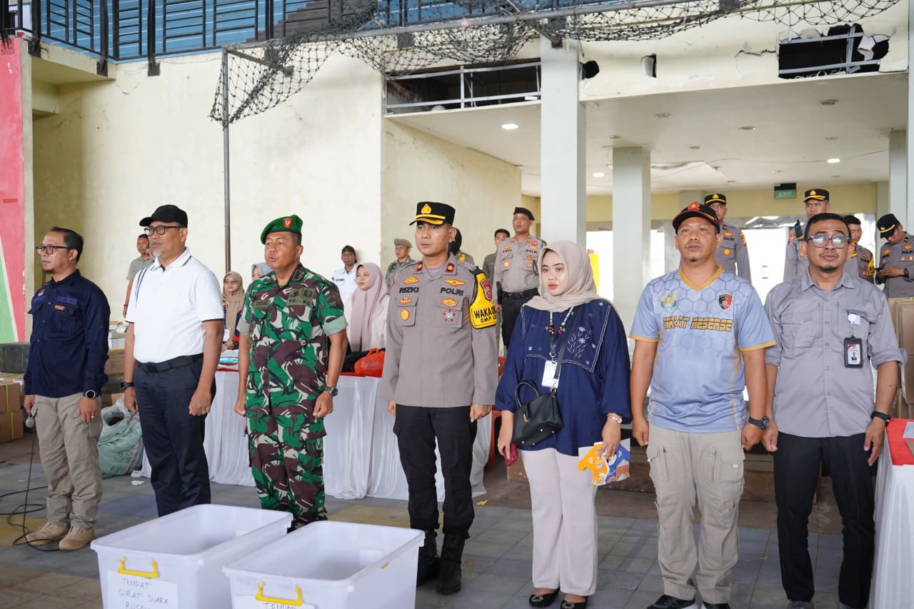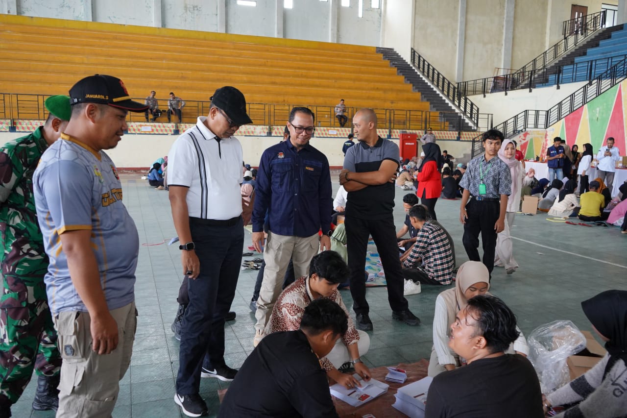 Inhil - Pastikan tahapan penyelenggaraan Pemilihan Kepala Daerah (Pilkada) berjalan sukses, Penjabat (Pj) Bupati Indragiri Hilir (Inhil), diwakili Asisten Pemerintahan dan Kesejahteraan Rakyat (Kesra) Sekretariat Daerah (Setda) Tantawi Jauhari, meninjau proses sortir dan pelipatan surat suara.