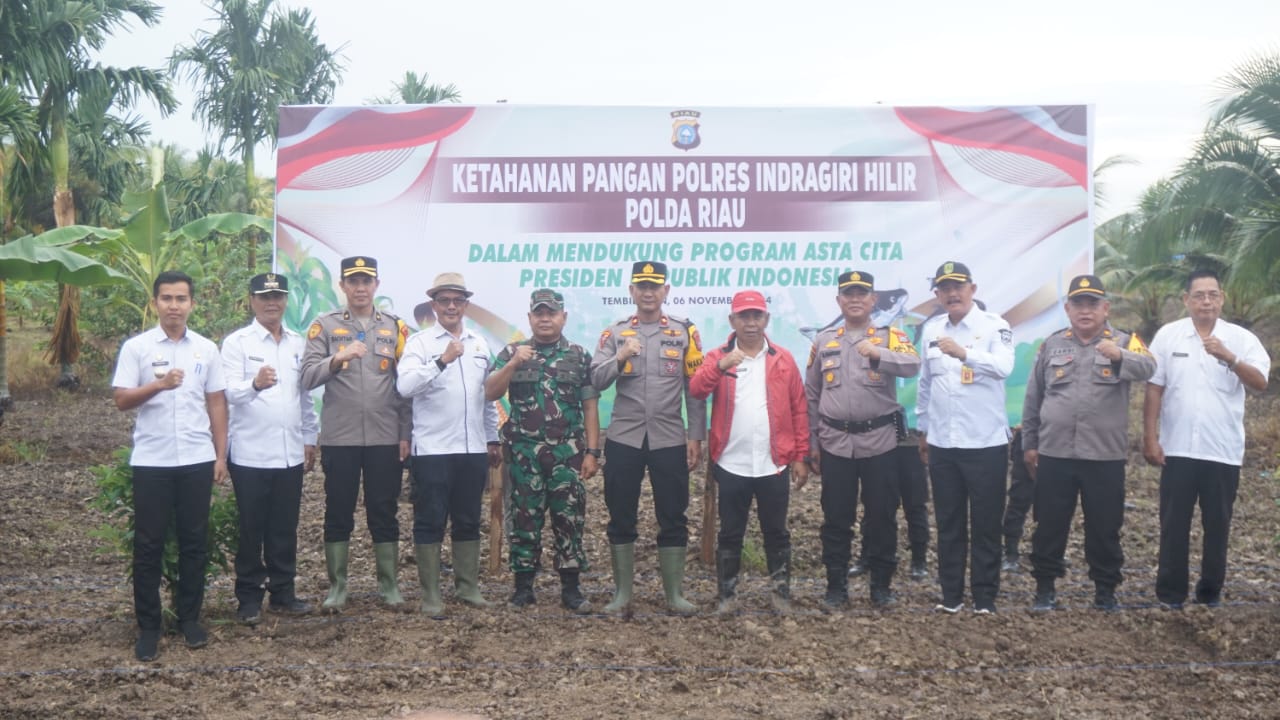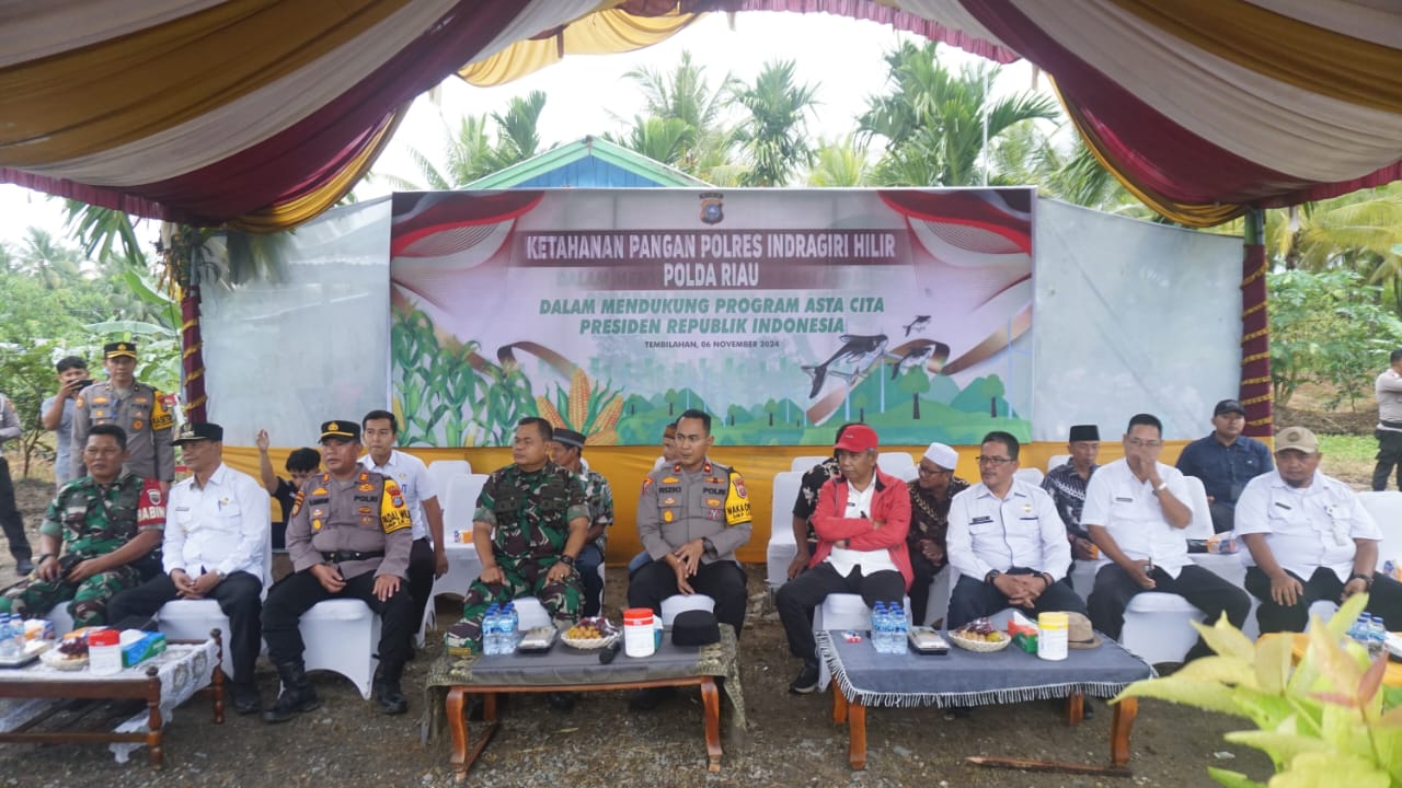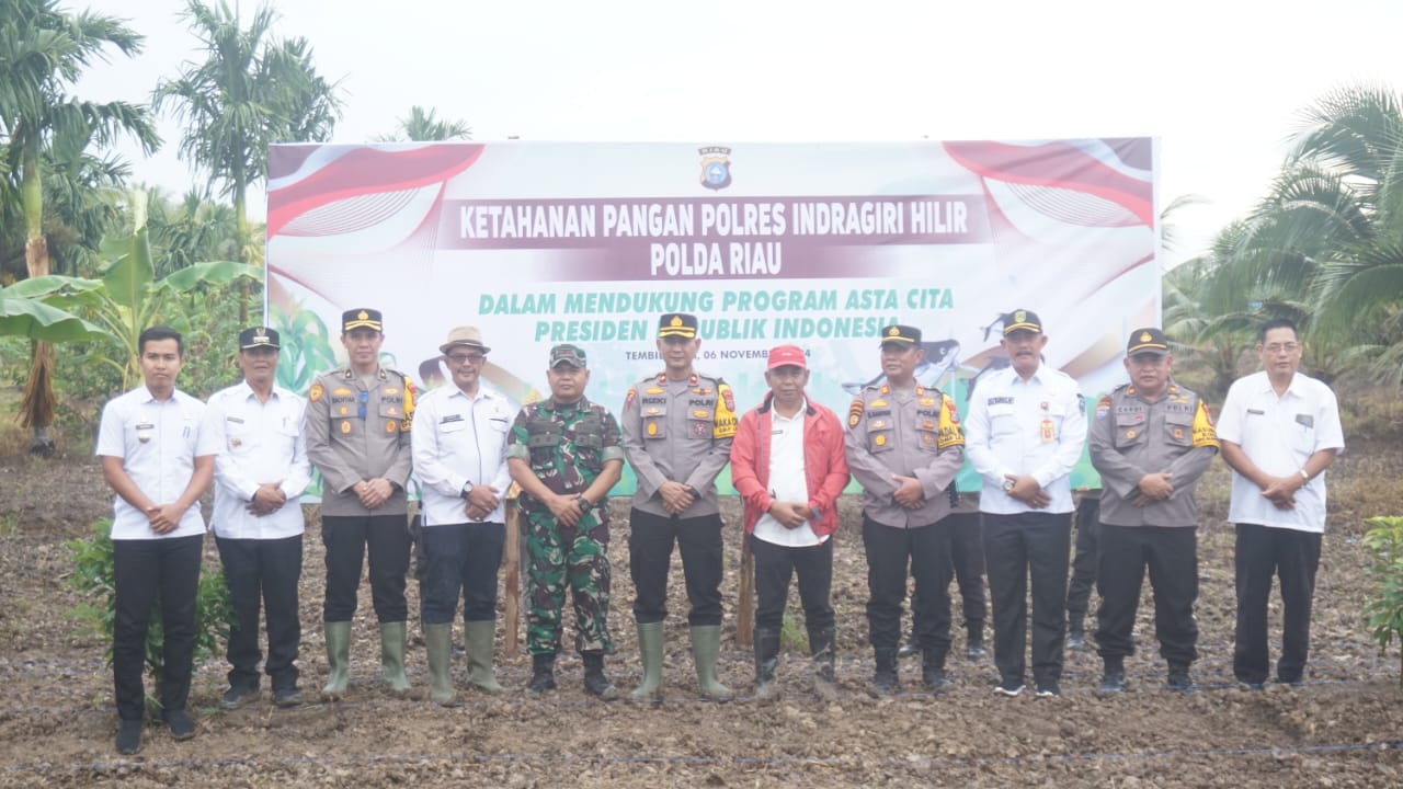 BUALKAN.COM,INHIL – Penjabat Bupati Indragiri Hilir (Inhil), yang diwakili oleh Asisten Bidang Perekonomian dan Pembangunan Sekretariat Daerah (Setda) Inhil, Junaidy Ismail, bersama Forum Koordinasi Pimpinan Daerah (Forkopimda) Inhil, melaksanakan kegiatan Kick Off Ketahanan Pangan di Pangkalan 7, Kecamatan Tempuling, pada Rabu (6/11). Kegiatan ini merupakan bagian dari program yang diinisiasi oleh Polda Riau sebagai bentuk dukungan terhadap Program Asta Cita Presiden Republik Indonesia.