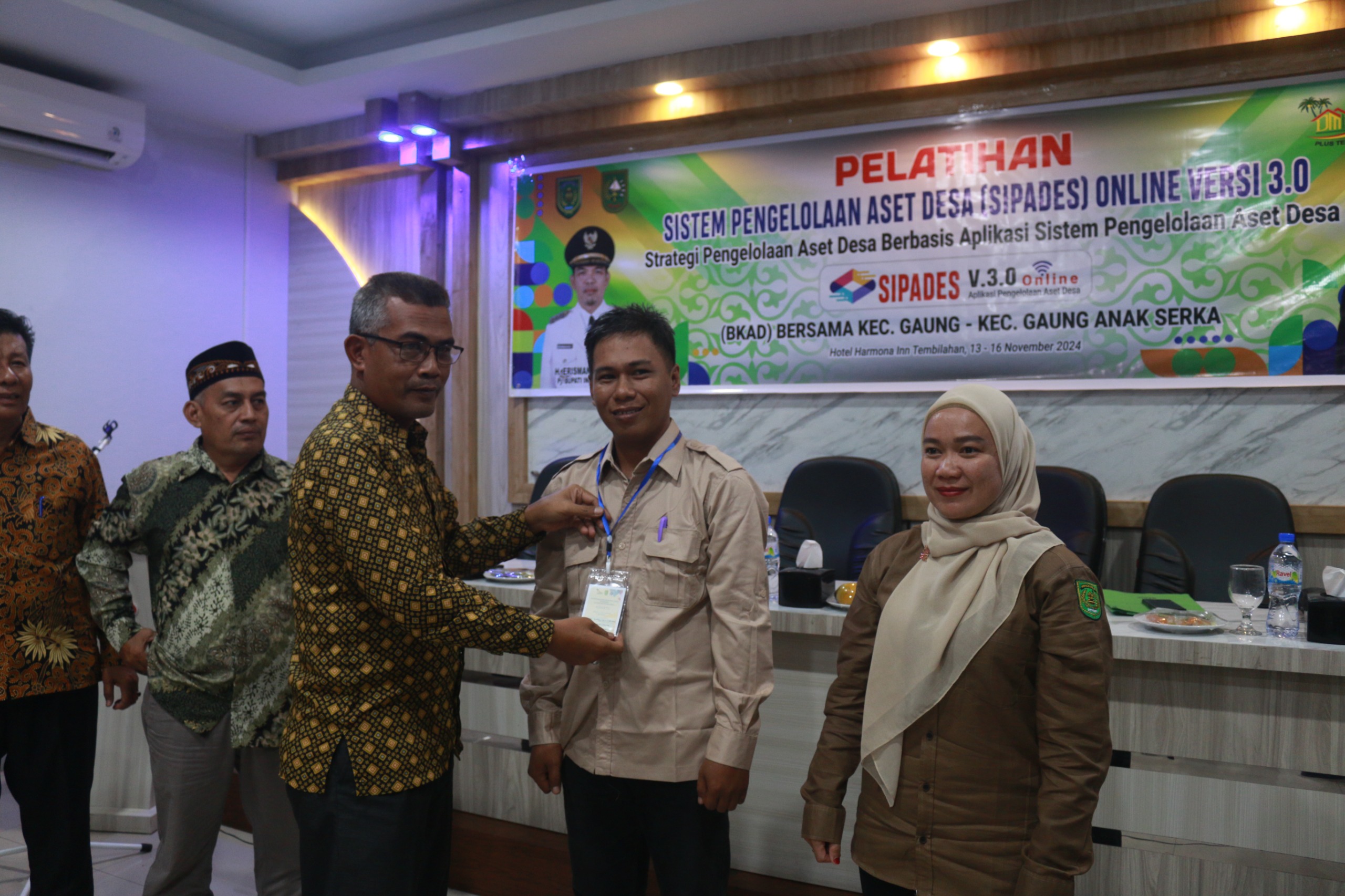 Pembukaan acara ini ditandai dengan pengalungan tanda peserta oleh Pj Bupati Inhil yang diwakili Kadis PMD kepada perwakilan peserta yang hadir. Pelatihan ini diadakan oleh Badan Kerjasama Antar Desa (BKAD) bersama Kecamatan Gaung dan Kecamatan Gaung Anak Serka.