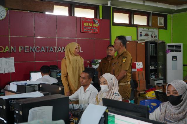 Bualkan.com,_Wakil Bupati Inhil Yuliantini, S. Sos, M.Si dengan didampingi Asisten Ekonomi dan Pembangunan Setda Kab. Inhil serta beberapa Kepala OPD di lingkungan Pemkab Inhil meninjau pelayanan dan administrasi kependudukan di Kantor Dinas Kependudukan dan Pencatatan Sipil, Senin siang (24/02/2024).