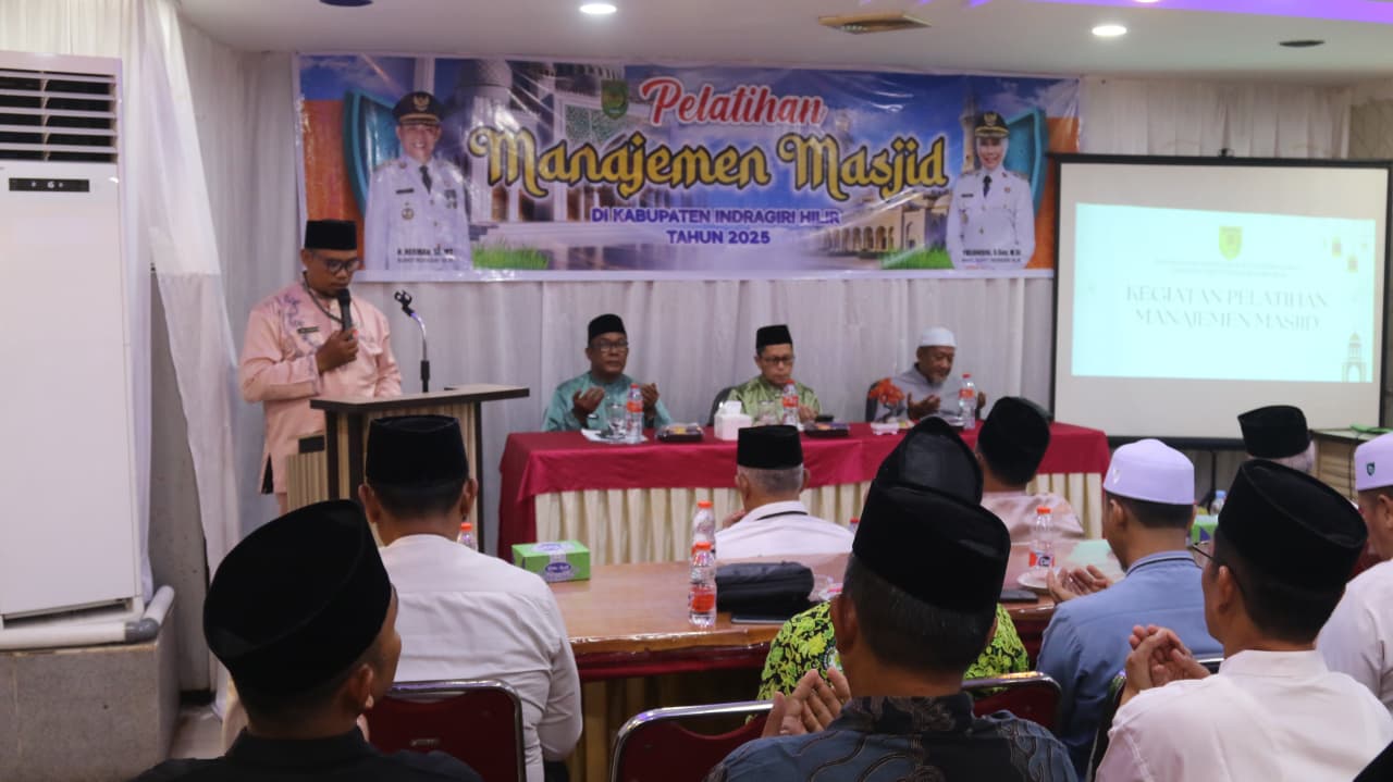 "Saya harap pelatihan ini menjadi ikhtiar dalam meningkatkan kompetensi para pengurus masjid dalam menjalankan tanggungjawab, yakni kualitas kepemimpinan, etos kerja, manajemen dan pengoptimalan fungsi masjid," ujar Asisten Setda saat menyampaikan sambutan Bupati Inhil.