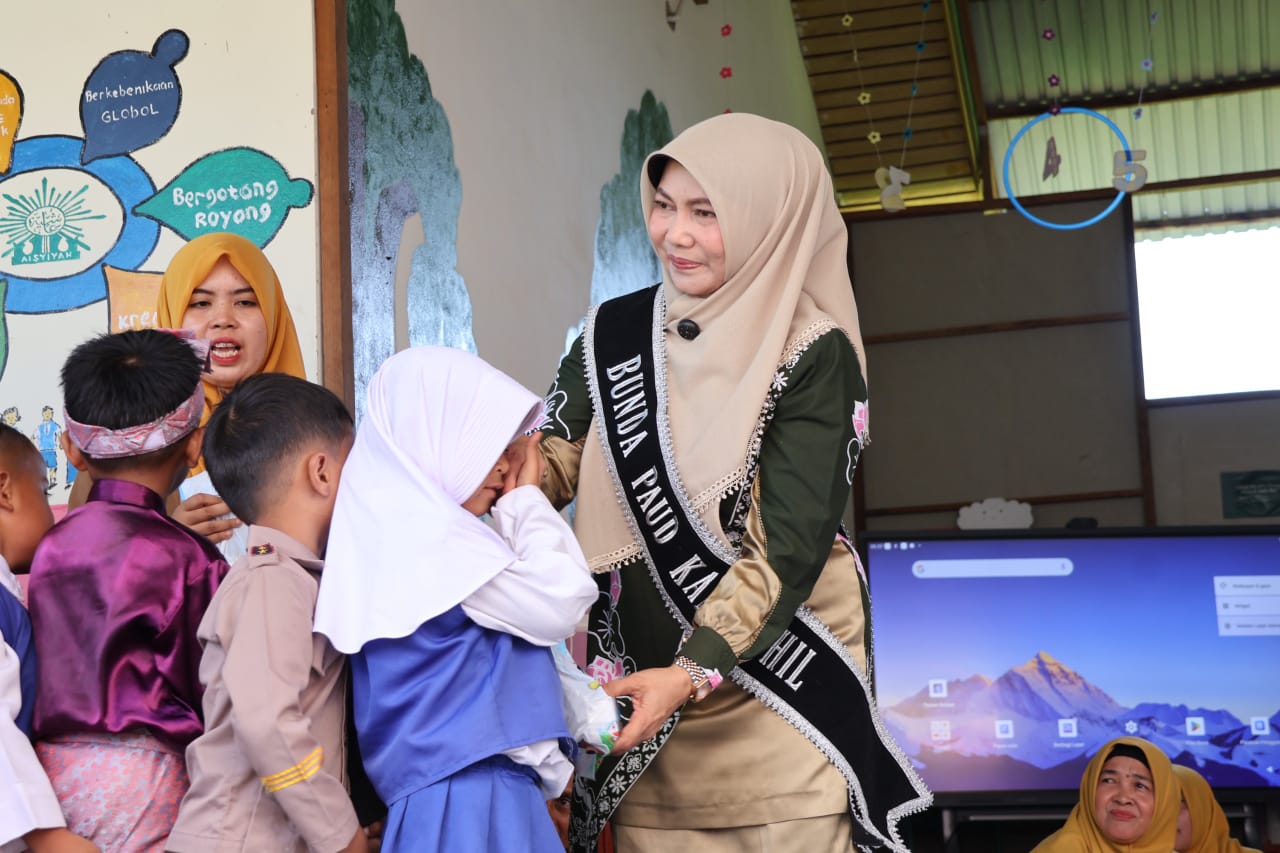Tembilahan - Menjalankan amanahnya mewujudkan PAUD berkualitas, Bunda PAUD Indragiri Hilir (Inhil), Katerina Susanti Herman, sambangi TK Viedu Inklusi, yang terletak di Jalan Kembang, Tembilahan.