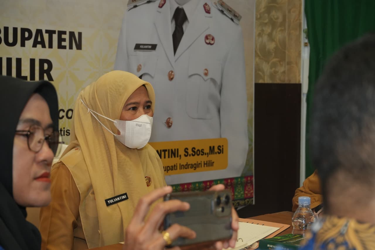 Inhil - Wakil Bupati Indragiri Hilir (Inhil) Yuliantini, yang juga memegang amanah sebagai Ketua Tim Percepatan Penanganan Stunting (TPPS), ikuti pertemuan virtual bersama Kementerian Kesehatan dan seluruh TPPS se Indonesia.