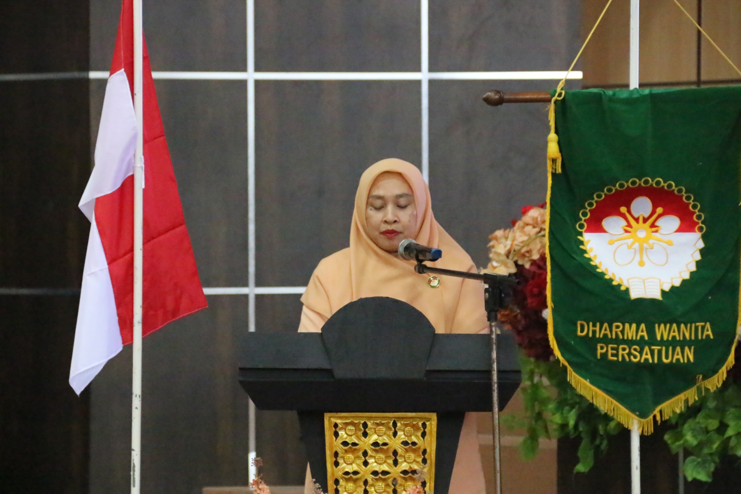 Kegiatan sosialisasi semakin lengkap dengan kedatangan narasumber dari Provinsi, Ny. Dra. Nailul Azmi Zulheri selaku sekretaris DWP Riau.